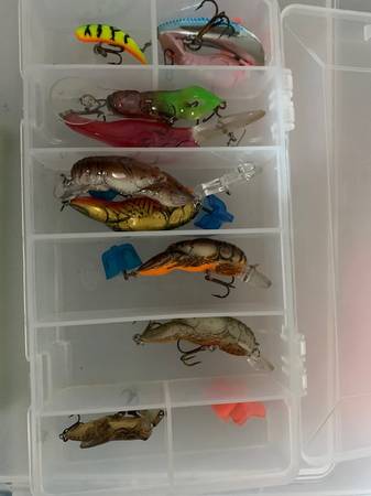 9 total NEW lures: 8 Rapala (1-CD9/1-CD7/3-DC5/3-CD or F3) & 1 Rebel (3 1/2") $35