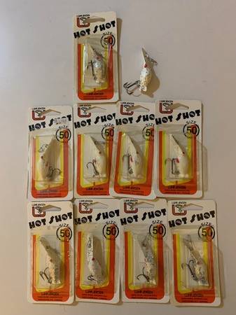 10 vintage new old stock Luhr Jensen #50 hot shots, color White Glitter, 9 in orig pkgs $70