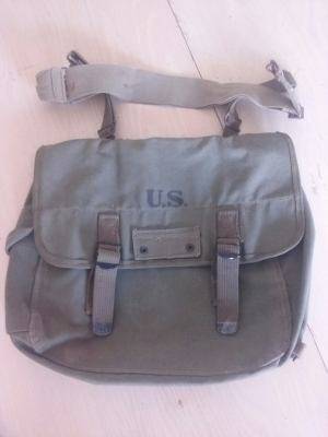 WWII musette, shoulder, satchel bag with strap. Stamped 1945.