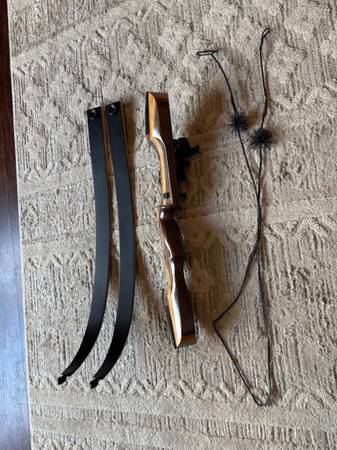 Southwest Archery Tiger Shark 62” Recurve bow. Comes with 35lb limbs, with an extra set of 45lbs included. Comes with stringer, carrying case with an expandable tube for arrows. I will throw in 6 used Carbon Express Heritage 250’s cut to 34”. Some of the arrows will need refetched. These are wood looking carbon arrows. It also has an Alpine detachable quiver. Brand new the bow is $204 by itself, extra 45lb limbs are $76, detachable quiver $34, and carrying case is $59. If all was bought new it would be $373. The bow, limbs, and accessories are all in new condition. Shoulder injury is the reason for selling. Price reduced to $200 Cash Contact me Call or text Five Zero Three 507-9599.