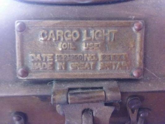 Great Britain cargo lamp Feb. 15, 1950. Brass oil lamp.