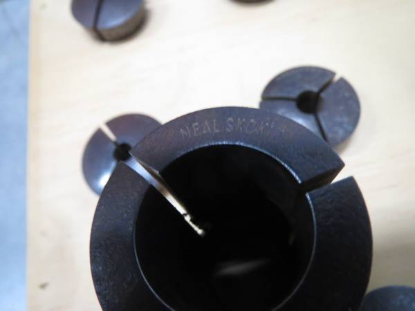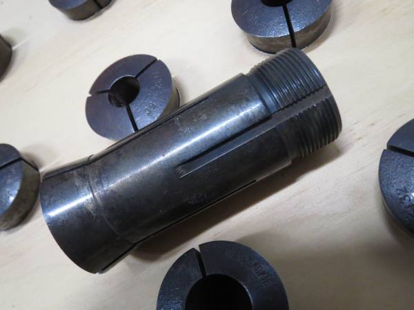 Set of 20 milling machine collets, 5C size, 1 1/4 x 20 external threads also internal threads. Sizes from 1/16" to 15/16". Two are a bit rough on the outside but may be salvageable the rest look good to go. Brands are Neal Skoki (made in Germany) and Hardinge and a few unmarked. Holder included. $50/set. i am not selling individual collets.
