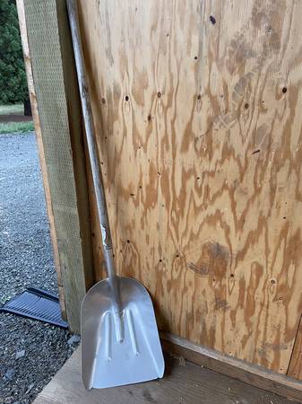 (2) Aluminum barn shovels with handles (retail 55) and (1) Aluminum barn shovel 48" $20 each or make offer on all Cash or Venmo No holds without payment in hand