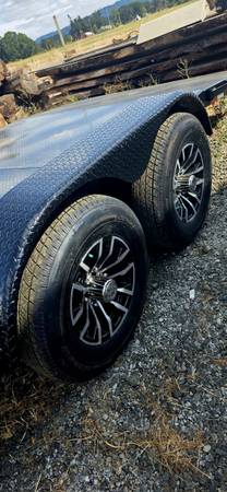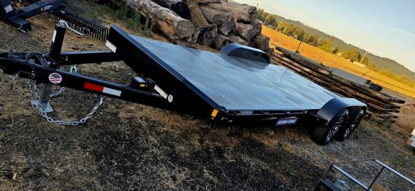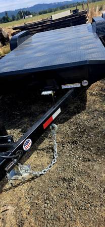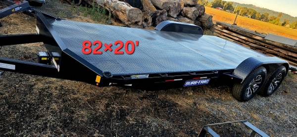 Brand new never used 82"×20ft car trailer. Steel deck. 5k axles. Removable fender. Beaver tail. Nice wheels. Long slide out ramps. Location in south independence Oregon. By appointment only.