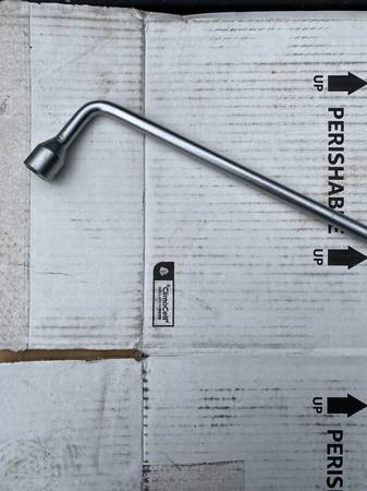 Original equipment tool imprinted with "Mercedes-Benz". Size is 10 3/4" long side and 3" short side. The tool is for hex nuts.