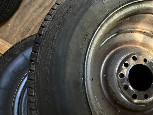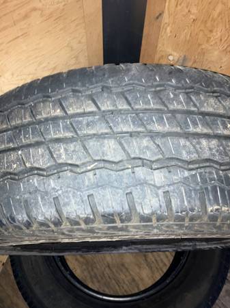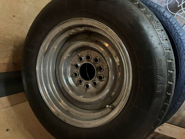 Chrome wheel with 10 hole pattern will fit Ford, Chevy, and probably more. Size 185-60-14 with pretty good tread. $30
